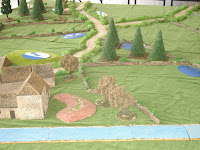 La table de 1,80m par 2,40m représente la zone de ces combats du 6 juin 1944, à l'échelle du 28mm.