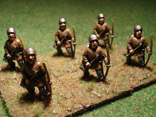 Dans la série des troupes légères de harcèlement, l'armée française dispose également de quelques archers légers. Ils jouent également le rôle de troupe écran. Voici quelques uns de ces archers à l'échelle du 25mm, tojours chez Alain Touller Figurines (ATF).