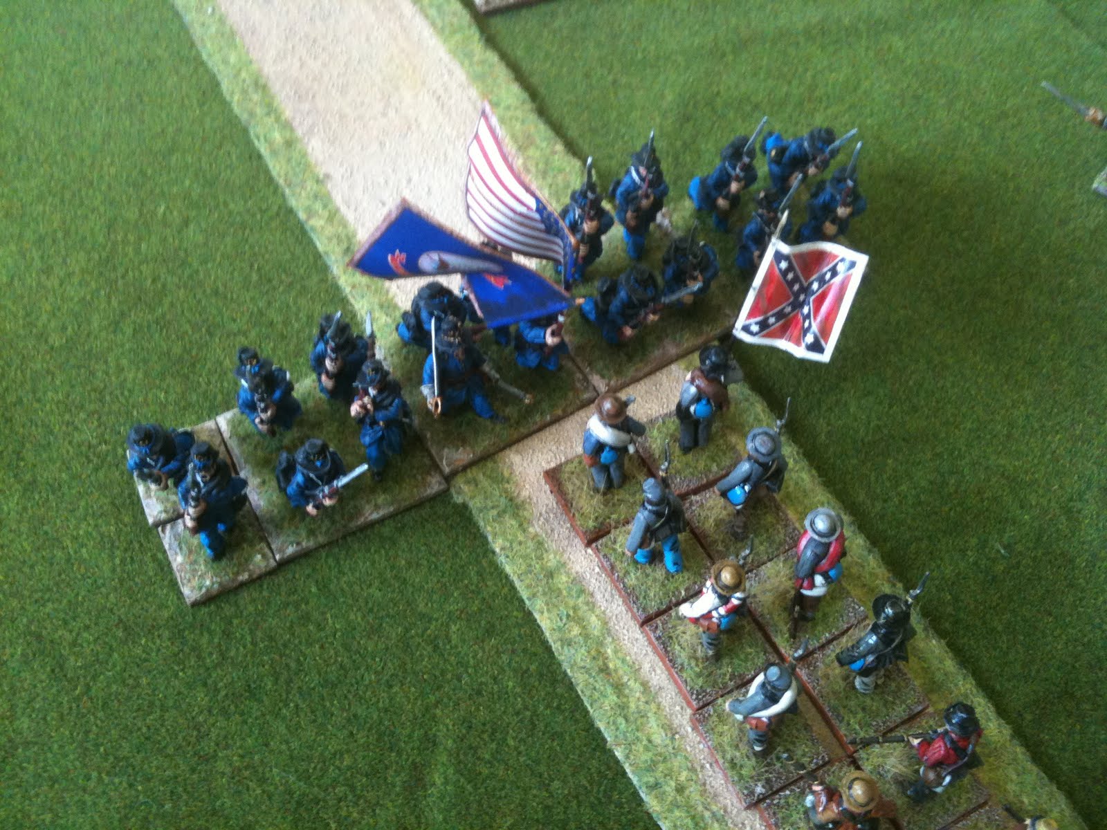 Quant aux combats, je vous assure qu'ils peuvent être redoutables lorsqu'une charge est lancée par une unité de nordistes en ligne, face à un bataillon sudiste en colonne de marche sur la route !