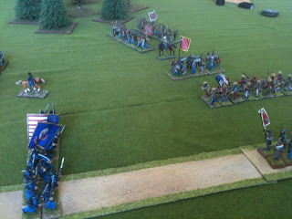 Comme annoncé, ce vendredi, nous avons pu tester le règle de jeu éditée par Warlord games (voir notamment les différents forums dédiés à cette règle sur le site de l'éditeur), faite pour recréer des engagements à l'échelle du 28mm, au temps de la poudre noire. Pour une première, comme la règle permet de jouer sur toutes les périodes utilisant la poudre noire, du début XVIIIème jusqu'à la fin du XIXème siècle, j'ai choisi le thème de la guerre de sécession, haut en couleurs.