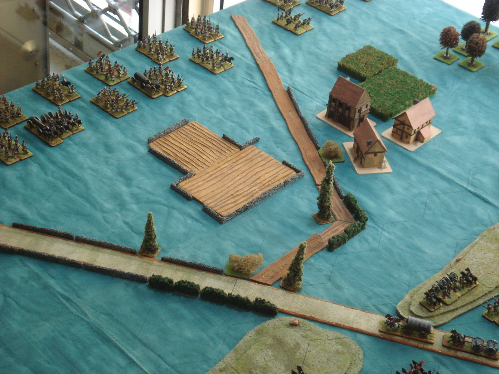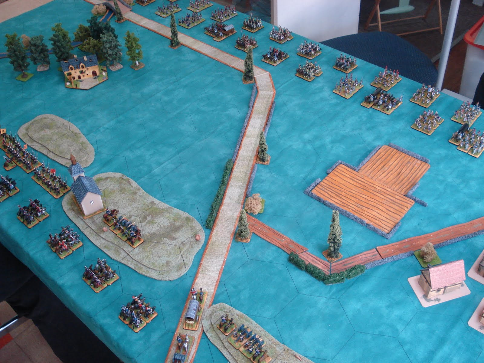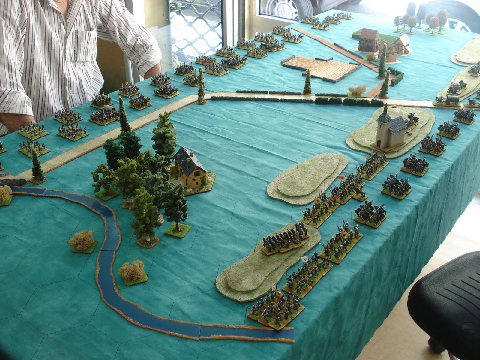Afin de permettre à chacun de joueur, Claude avait amendé la règle de jeu de la façon suivante : Chacun des quatre généraux possédaient, par tour de jeu, de quatre points de commandement pour activer ses troupes (du côté français, Claude commandait le centre et l'aile gauche, dans le rôle du Général en chef, Jean-Louis commandant l'aile droite, alors que du côté britannique, Pascal commandait le centre et l'aile gauche en qualité de Général en chef, quand je commandais, pour ma part, l'aile droite britannique).