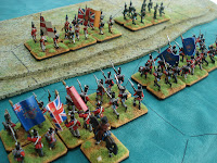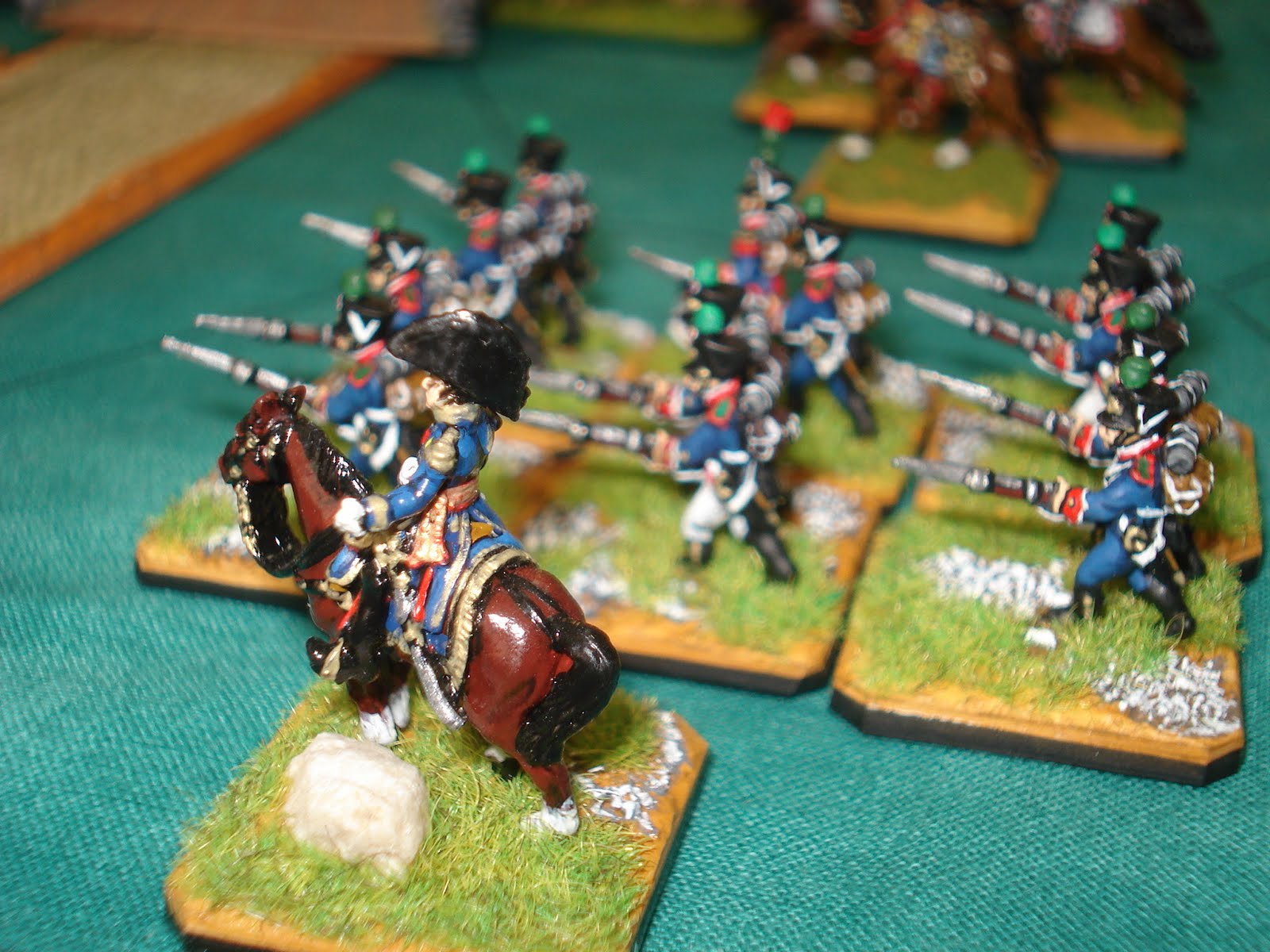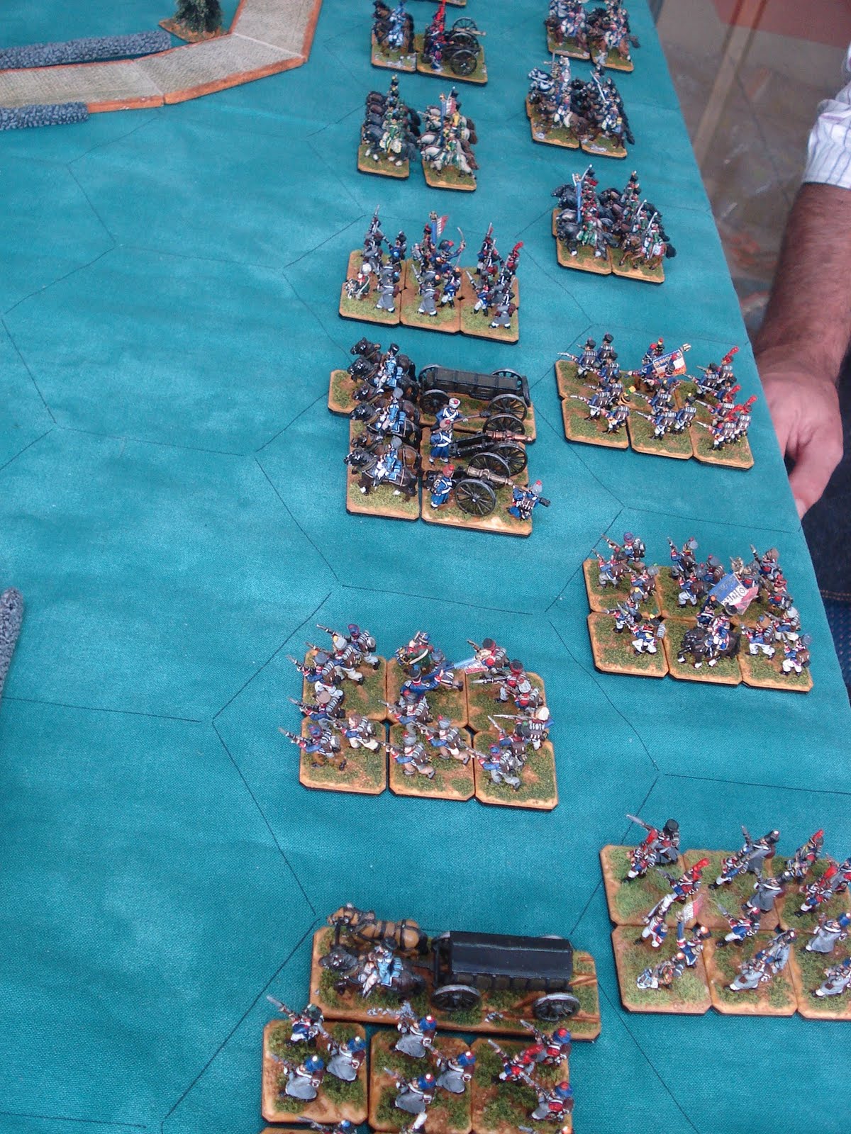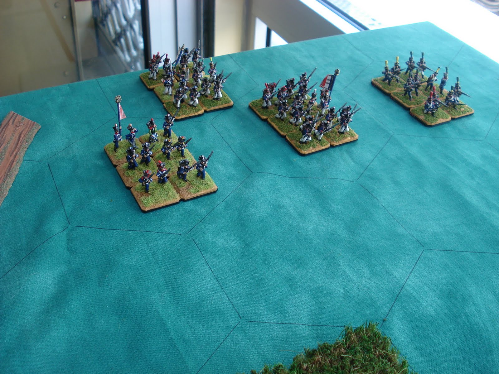 Afin de permettre à chacun de joueur, Claude avait amendé la règle de jeu de la façon suivante : Chacun des quatre généraux possédaient, par tour de jeu, de quatre points de commandement pour activer ses troupes (du côté français, Claude commandait le centre et l'aile gauche, dans le rôle du Général en chef, Jean-Louis commandant l'aile droite, alors que du côté britannique, Pascal commandait le centre et l'aile gauche en qualité de Général en chef, quand je commandais, pour ma part, l'aile droite britannique).