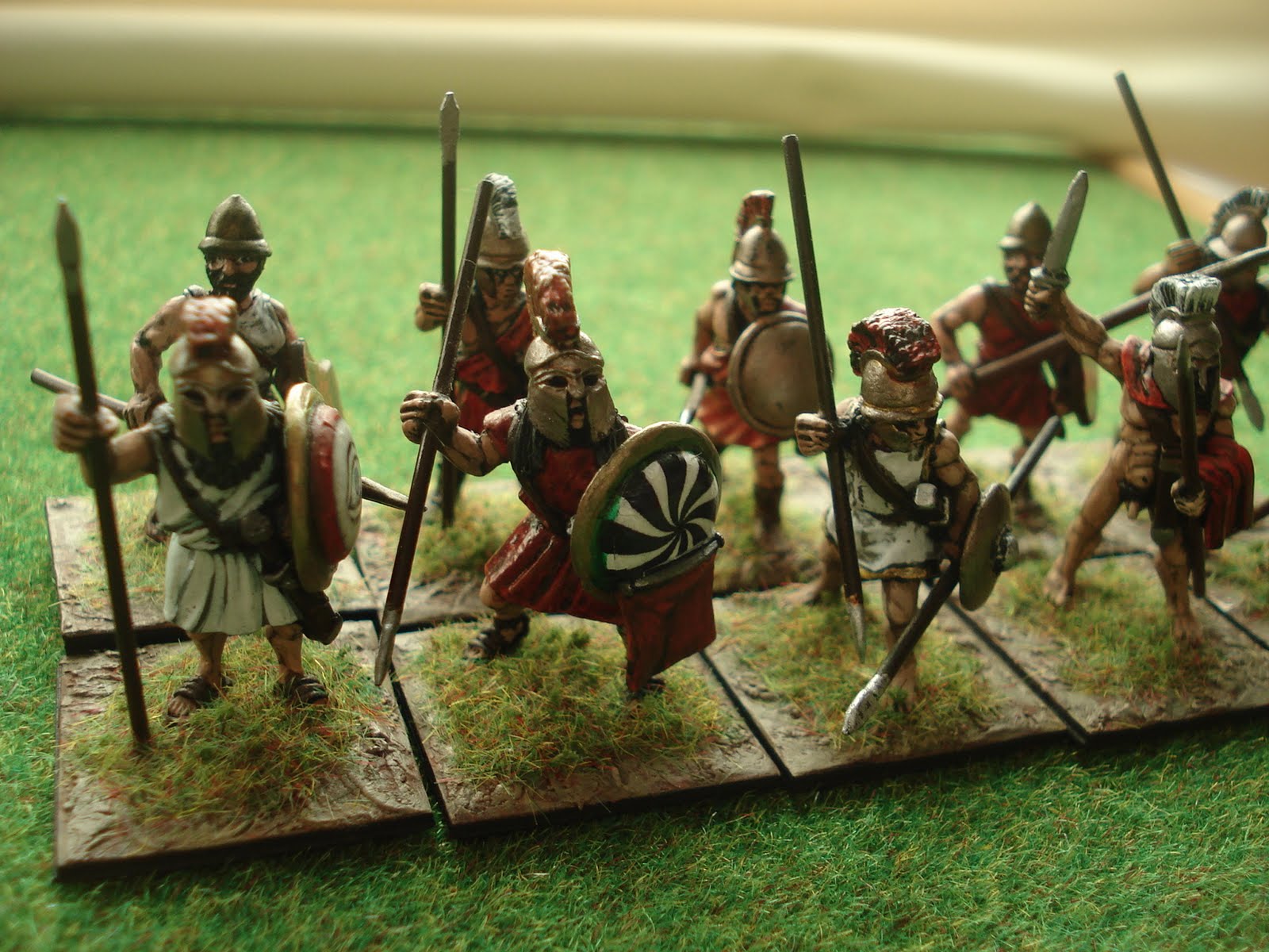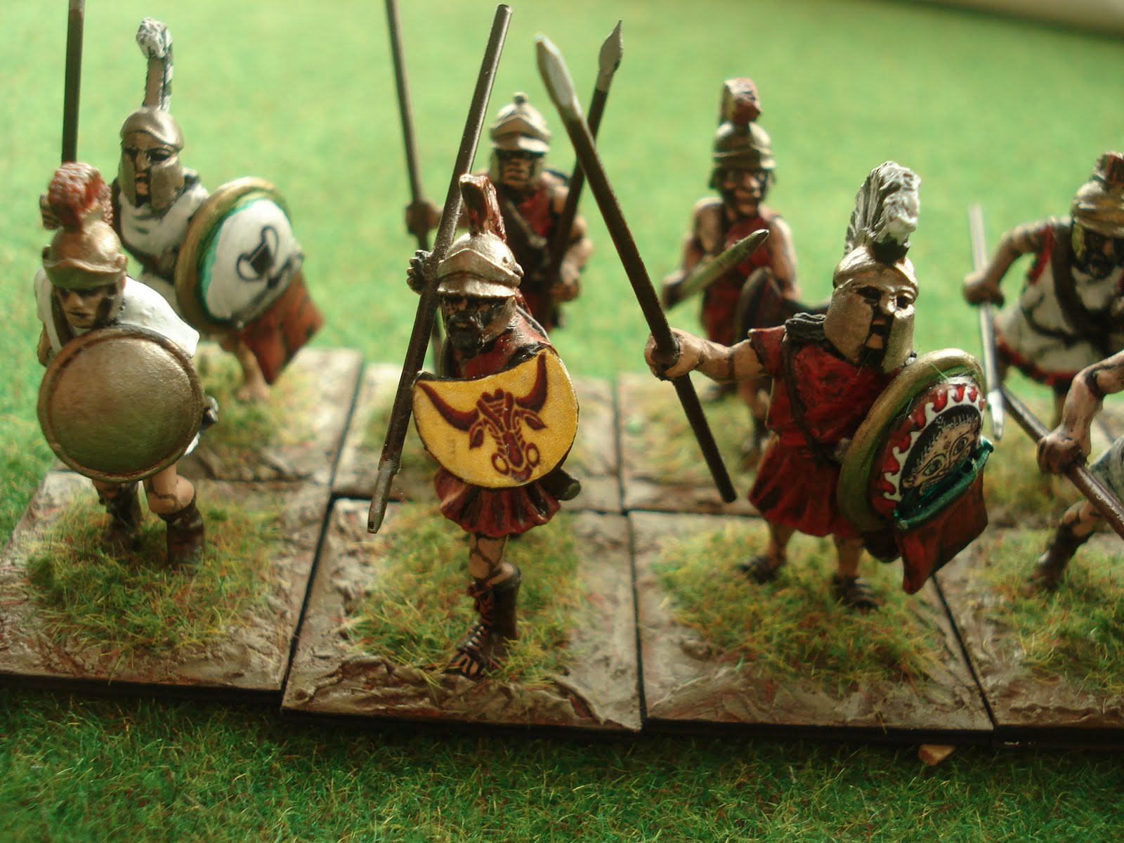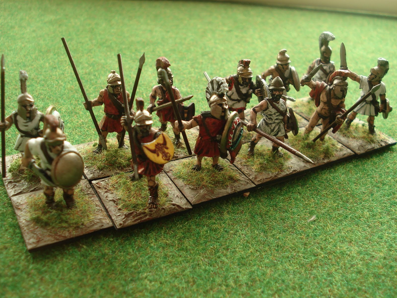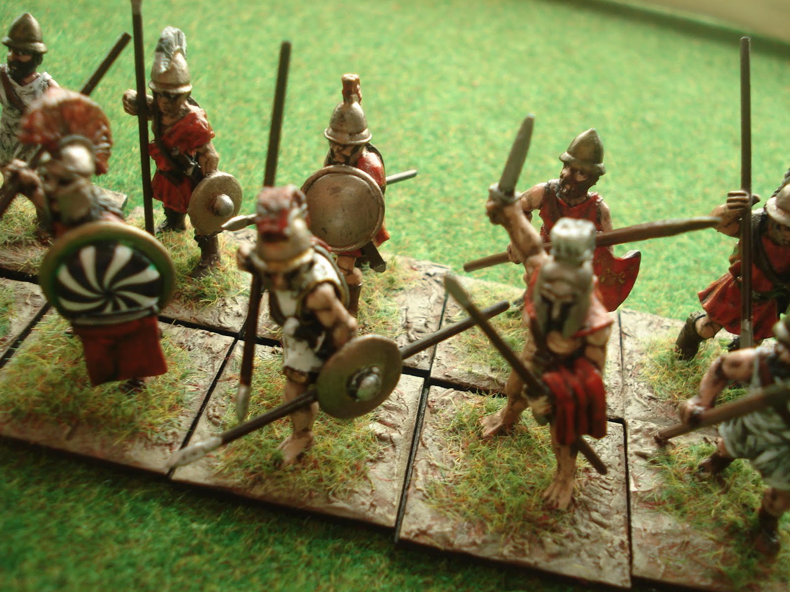 A commencer par les phalanges, une infanterie puissamment armée (d'une longue lance et d'un bouclier, parfois même d'une cuirasse pour les hoplites placés au premier rang, les plus fortement protégés) et combattant en ordre serré, chaque hoplite protégeant de son bouclier le frère d'arme se trouvant à sa gauche. Dans Impetus, cette infanterie est qualifiée de fantassins protégés. Combattant sur plusieurs rangs de profondeur, une unité de lancier peut être soutenue par une deuxième, placée immédiatement derrière la première, l'ensemble formant une grande unité partageant le même sort tout au long de la partie (avec un bonus de profondeur au combat).