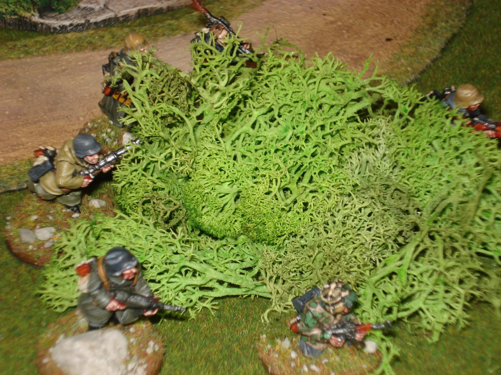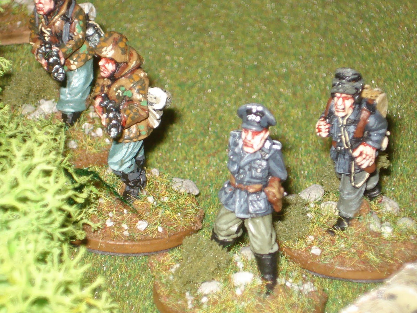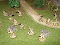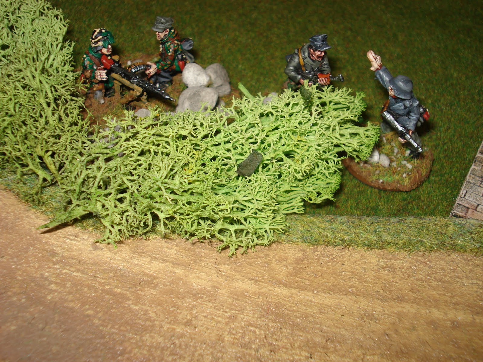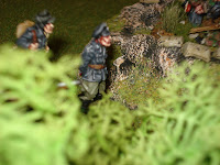 pas essuyer le moindre tir. En effet, les allemands sont tous en position défensive, à l'abri derrière les différents reliefs du terrain. Ils attendent patiemment le bon moment pour réaliser un feu collectif surprise à courte portée.