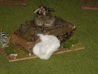 Avec la mise en oeuvre de ces nouveaux blindés, le lieutenant allemand décide d'ouvrir le feu avec le Pak 38 positionné sur la deuxième ligne défensive. En effet, le sherman de tête présentant le flanc, il fait une excellent cible pour le canon antichar. L'effet attendu ne tarde pas puisque dès le tour 4, les servants ouvrent le feu et font "mouche" ; le blindé est immobilisé et les occupants évacuent.