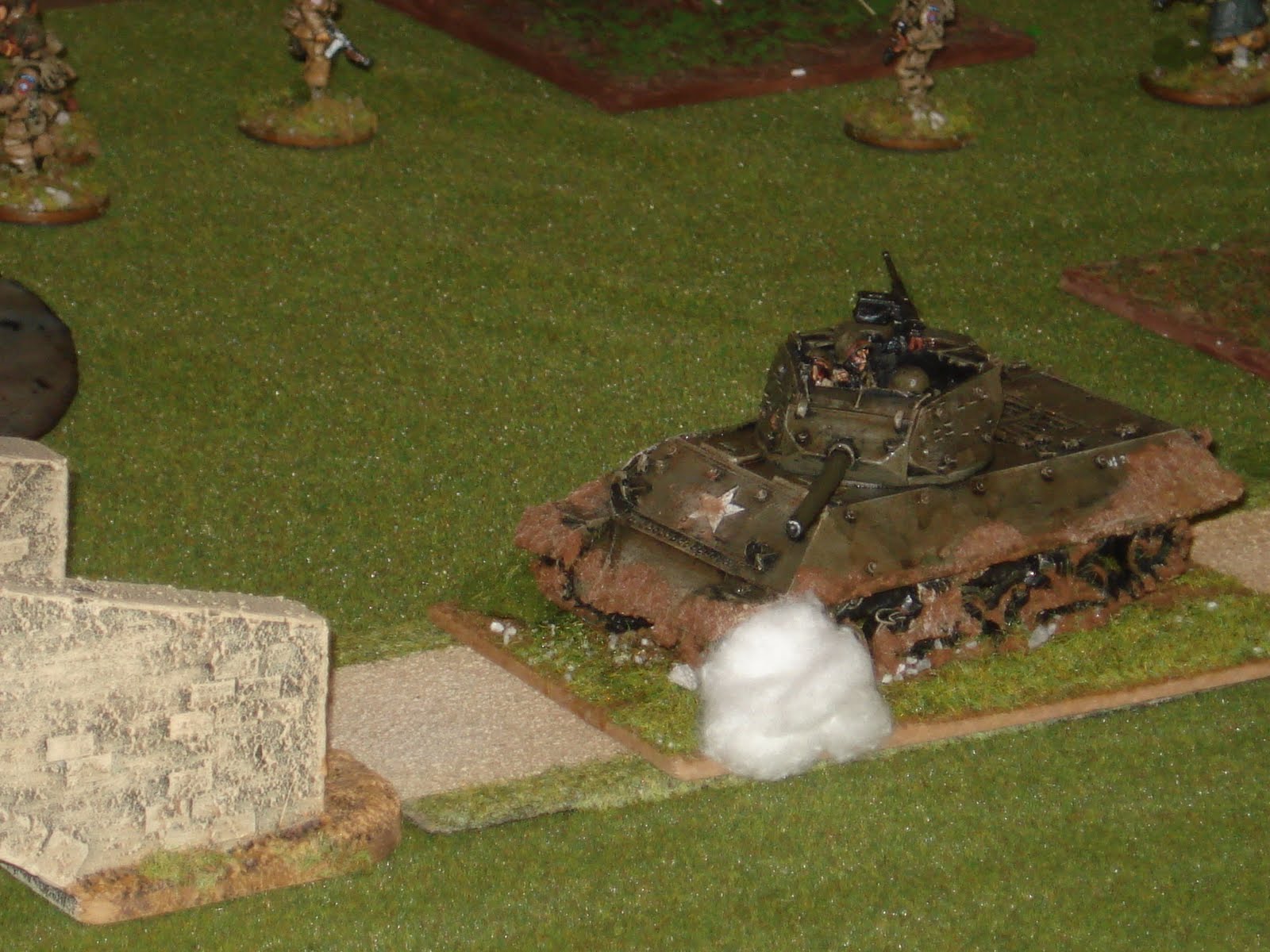 Alors que l'action combinée du mortier et des mitrailleuses calibre 30 est couronnée de succès, effaçant le premier rideau défensif allemand, les héros partis à l'assaut du pont sont tous au tapis ! Heureusement c'est le tour 3 et les shermans entrent en jeu par la route.