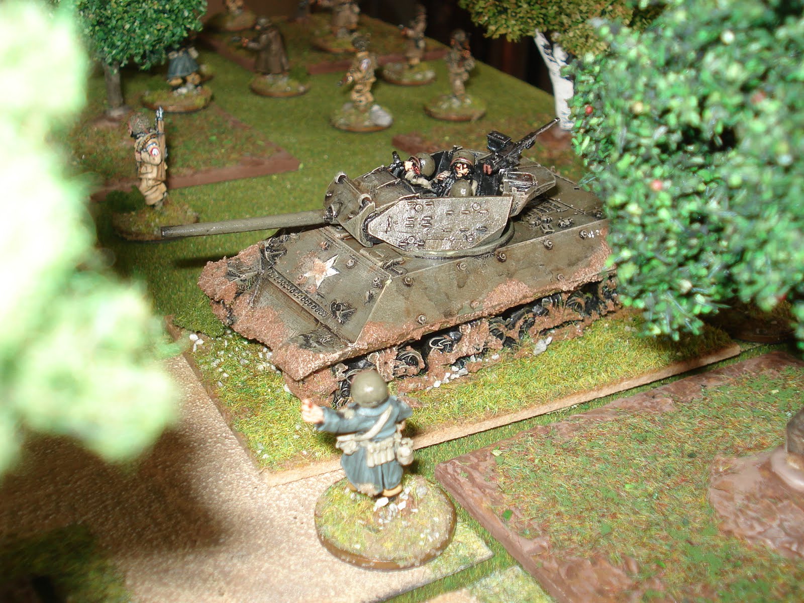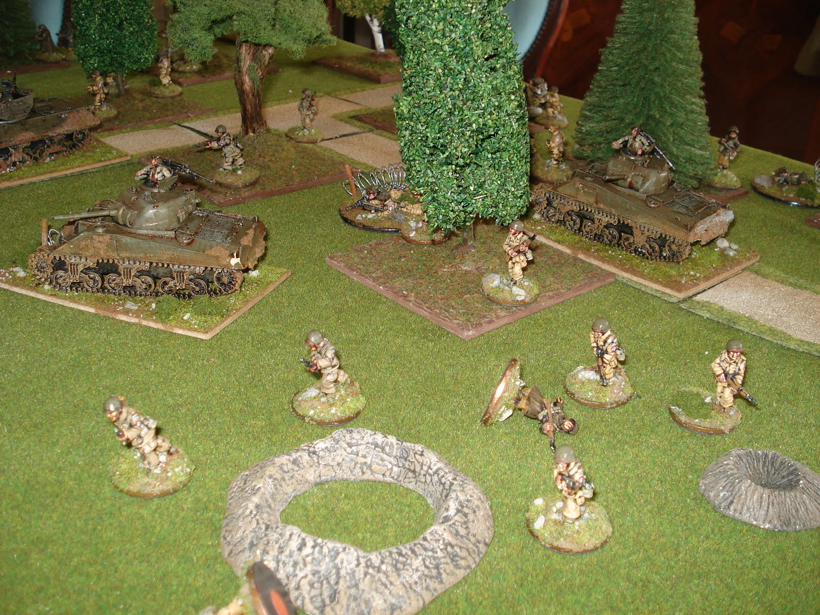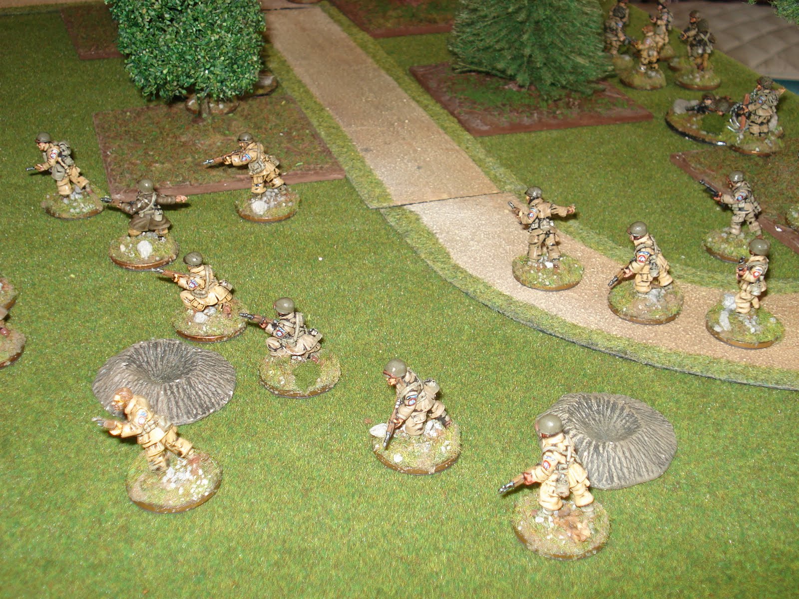 Du côté américain, la section consiste en un squad de commandement, trois squads d'infanterie et trois groupes de support dont, un mortier de 60mm et deux mitrailleuses "calibre 30". L'infanterie est supportée par un M10 destroyer (équipée d'un excellent canon de 90mm) et deux shermans M4A3 (dotés du canon de 76mm).