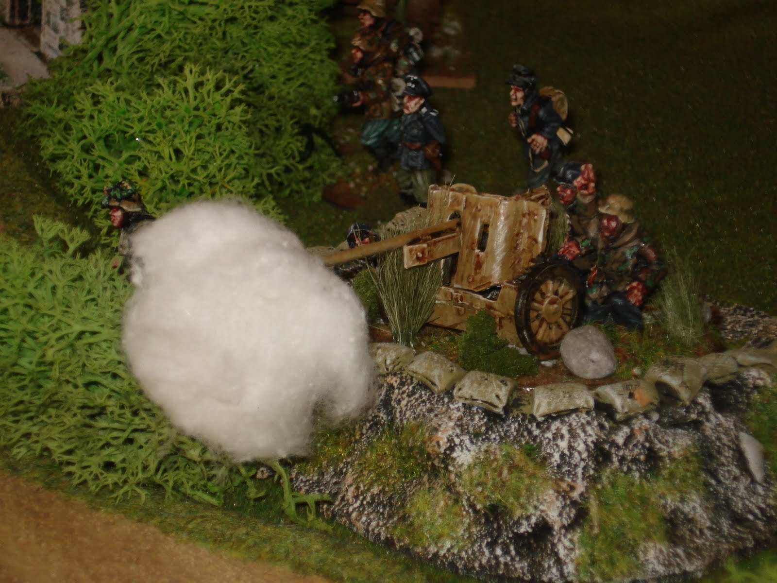 La réaction alliée ne se fait pas attendre : le lieutenant américain réclame un appui aérien par radio. Dès le tour 5, le raid aérien est effectué par un P38 lightning dont la proximité a rendu l'intervention possible ; le canon est détruit et ses servants tués.