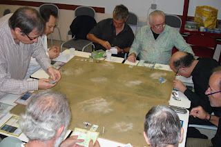 Bref, grâce à ces agapes, tout le monde s'est finalement installé, rassuré, autour de la table de jeu, prêt à participer au "grand cirque". Nous étions neuf pilotes très motivés (Albert n'ayant pas pu faire le dixième, contraint de rentrer soigner un très vilain ruhme et non pas rhum, après nous avoir dit bonsoir).