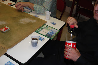 Afin d'oublier le danger, nous avons tous (sauf Thierry et Daniel qui sont restés au jus de pommes, c'est peut-être la raison pour laquelle ces derniers sont restés en vol plus longtemps que leurs comparses) cédé à la tentation du Madiran ou du Muscadet, tout en partageant, saucisson, chorizzo, paté en croûte, tomates cerises et autres chips. Ces moments de convivialité, dont notre association Histoire de plomb a le secret, permettent périodiquement d'échanger sur tous les thèmes, au-delà du seul jeu.