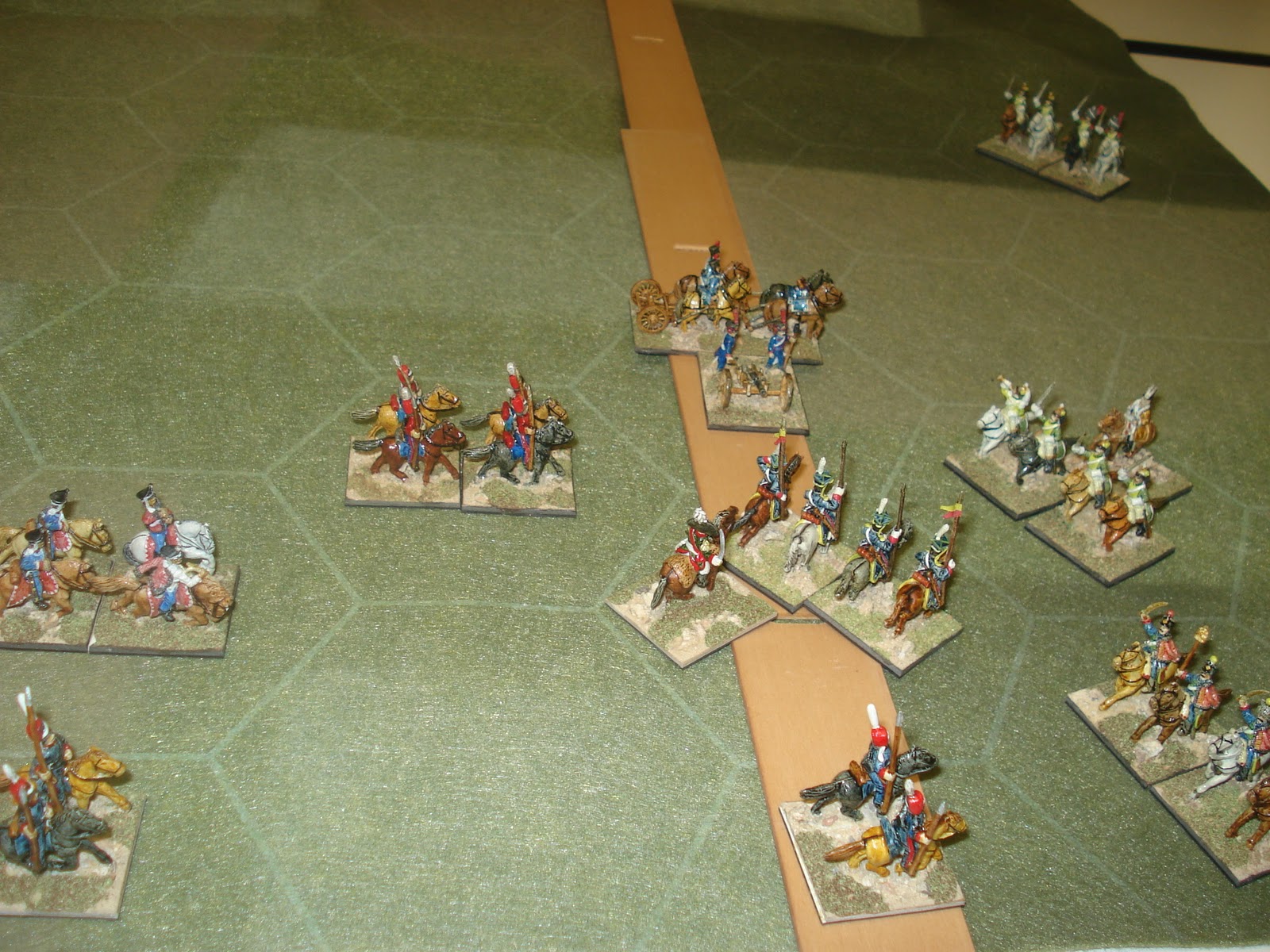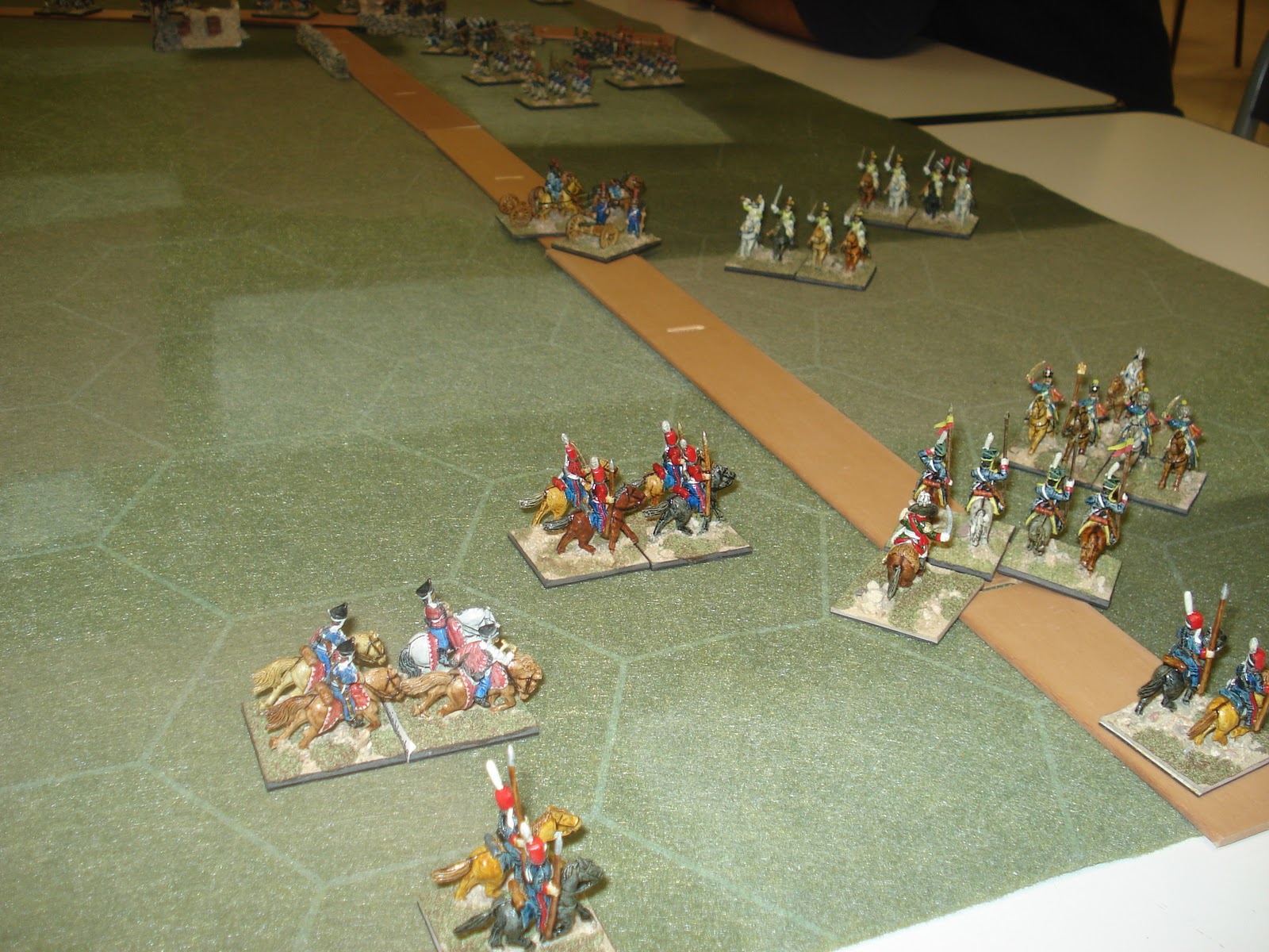 Tout avait bien commencé : J'étais à la tête de l'aile droite russe, commandant la cavalerie du Tsar, forte d'une grosse division de cavalerie légère (composée de lanciers, de cosaques et de hussards), appuyée par une division de cuirassiers et soutenue par de l'artillerie à cheval. Je devais mener un enveloppement hardi de l'armée française sur un terrain plat et dégagé. En effet, sur cette partie du champ de bataille, Stéphane m'opposait une aile gauche composée de cavalerie légère moins nombreuse mais appuyée par trois brigades de cavalerie de ligne (formée de dragons) et de l'artillerie à cheval.