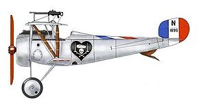 Charles Nungesser avait commencé sa carrière de pilote au sein de l'escadrille VB 106, à bord d'un bombardier Voisin X. Il y accomplit 53 missions, tout en obtenant la croix de guerre pour avoir abattu un albatros. Par la suite, il intègre l'escadrille de chasse N65 basée à Nancy, avant de participer à la bataille de Verdun, puis à celle de la Somme, en accumulant les victoires, période durant laquelle il adopte, vraissemblablement, sur son appareil, le blason présenté plus haut.