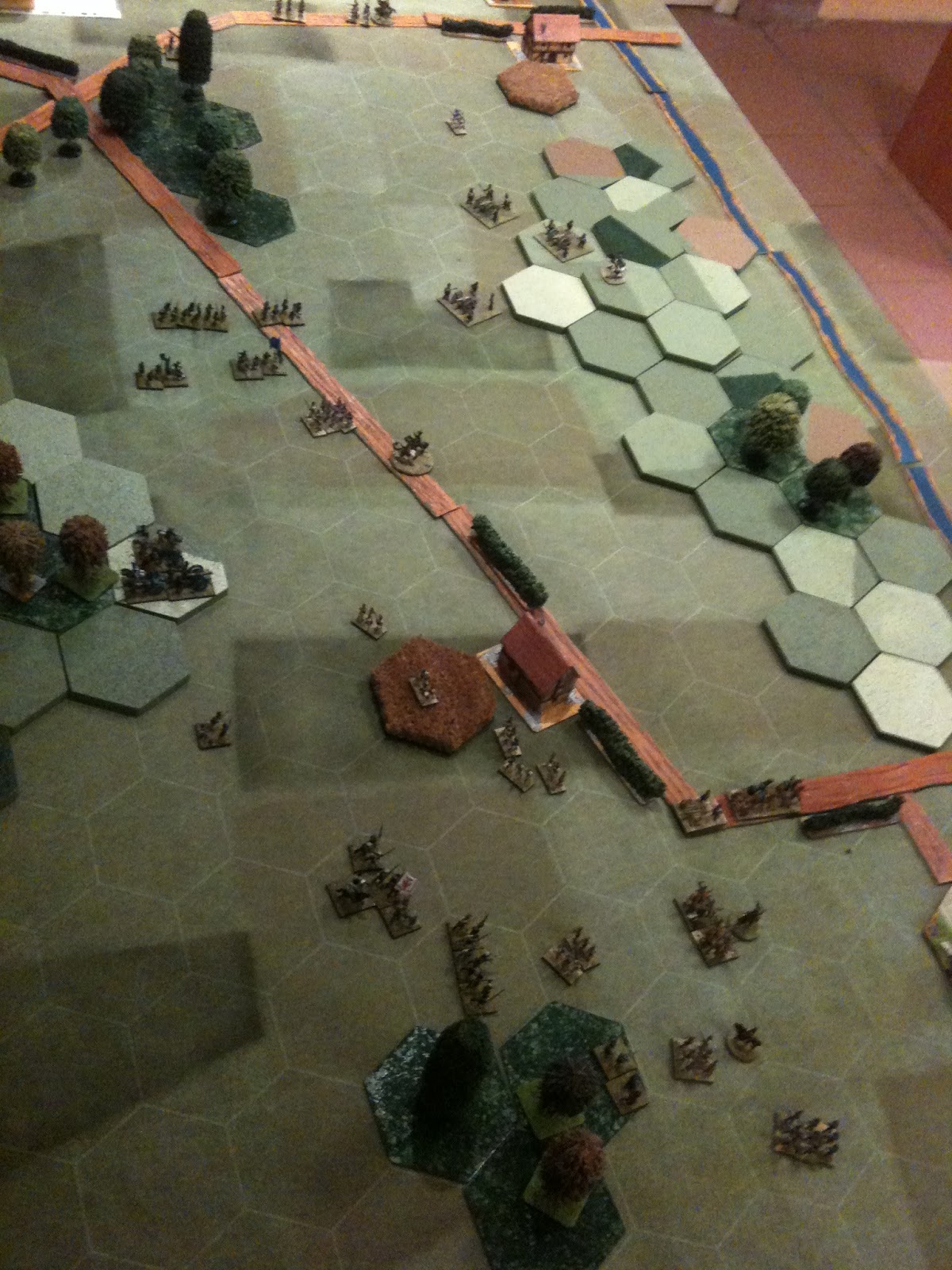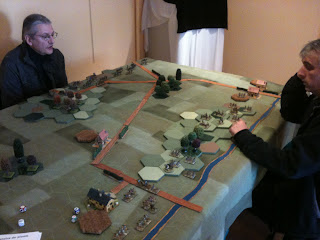 Dans un premier temps, nos deux joueurs prussiens allaient perdre quelques effectifs, négligeant, par méconnaissance de la règle, l'importance des soutiens. Mais notre ami Alain étant une vieille moustache du jeu d'histoire, il intègrera rapidement ce point crucial de la règle afin de rétablir l'équilibre.