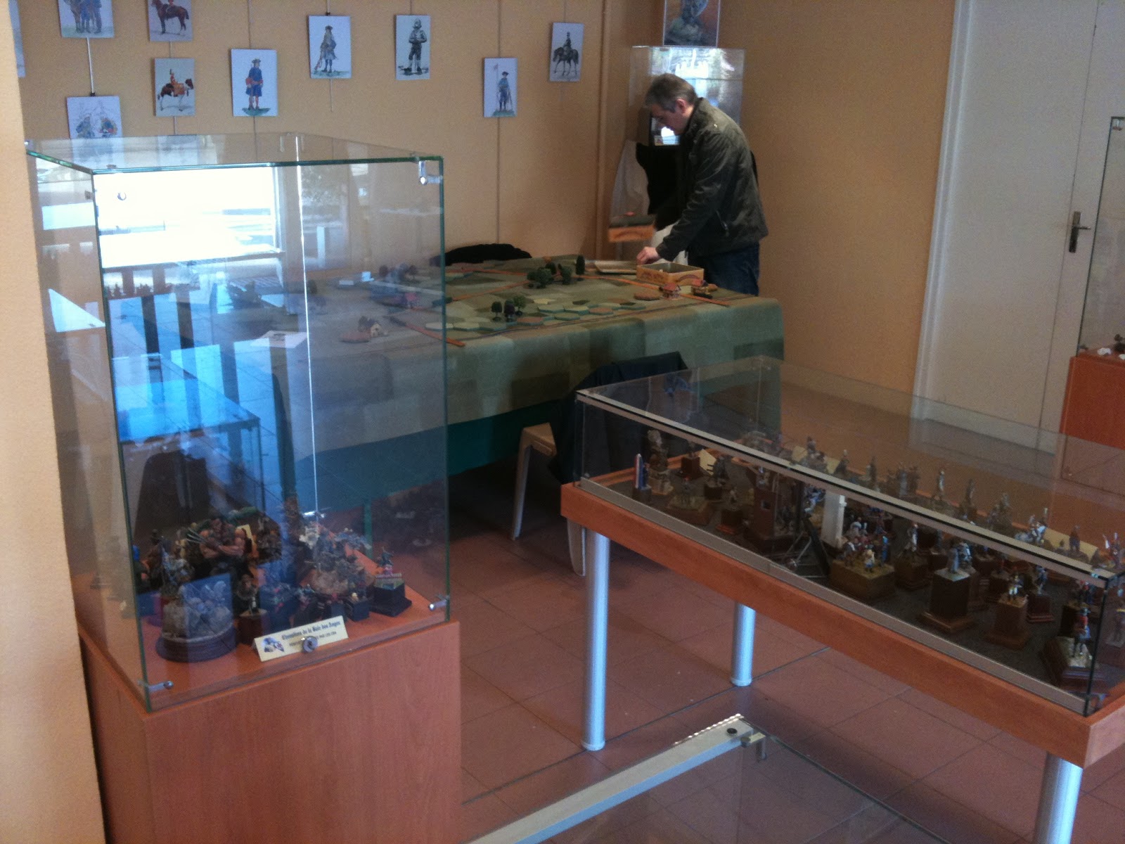 A cet effet, c'est le thème du Premier Empire qui avait été choisi, tant cette période emporte la préférence de nos amis CBA, comme celle du grand public en général. Aussi, Jean-Louis avait couché sur le papier, le scénario d'une bataille franco-prussienne de la campagne de 1813, à jouer avec la règle Tactique à l'échelle du 15mm. De son côté, Claude qui n'était pas disponible (à moins qu'il se soit invité incognito sur les lieux de l'exposition comme vous pourrez le constater en marge de ce billet), avait fort gentiment préparé tout le matériel nécessaire (tapis de jeu, décors en tous genres) à la réalisation de cette démonstration. Qu'il en soit remercié ! Enfin, pour ma part, j'avais joué les agents recruteurs en amont afin de faire vivre cette animation.