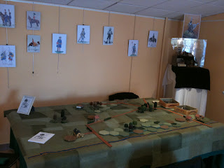 A 9H30 c'est à dire, à l'ouverture de l'exposition (que je conseille à nouveau, viivement, à tout amateur de figurines historiques), nous étions sur les lieux afin de préparer la bataille devant nous permettre de partager une journée très conviviale. J'insiste, en effet, sur le fait qu'en marge de cette partie de jeu d'histoire, nous avons passé une bonne partie de la journée à échanger sur notre sujet de prédilection (l'histoire militaire) avec nos amis des CBA.