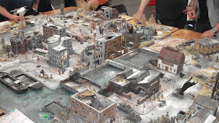 Toutes les échelles étaient repésentées (du 6mm au 54mm), même si un vent de 28mm semble désormais souffler sur le monde du jeu d'histoire. Ainsi, nous avons pu découvrir, avec stupéfaction, une reconstitution géante de la bataille d'Arhnem à l'échelle du 1/48, comme vous pouvez le constater sur la photo ci-dessous.