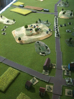 L'objectif du scénario qui devait être disputé sur la table, dans sa longueur, était, pour le joueur russe, de quitter la table, par la route, avec au moins 25% de ses forces. Le joueur allemand devait l'en empêcher grâce à une armée dotée d'un budget sensiblement plus important, mais scindée en deux groupes l'un sous le commandement de Jean-Louis (sur l'aile droite) et l'autre sous la direction de votre serviteur (sur l'aile gauche).