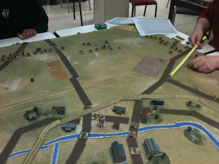 Il s'agissait de mettre en musique l'action du groupement De Langlade, issu de la 2ème DB, au détour du village lorrain de Dompaire. Comme la partie semblait intéressante à jouer, j'avais proposé à Stéphane de me ranger du côté des méchants afin d'affronter The Clo and Jo Ltd , dirigée par Jo en personne (assisté de Stéphane).