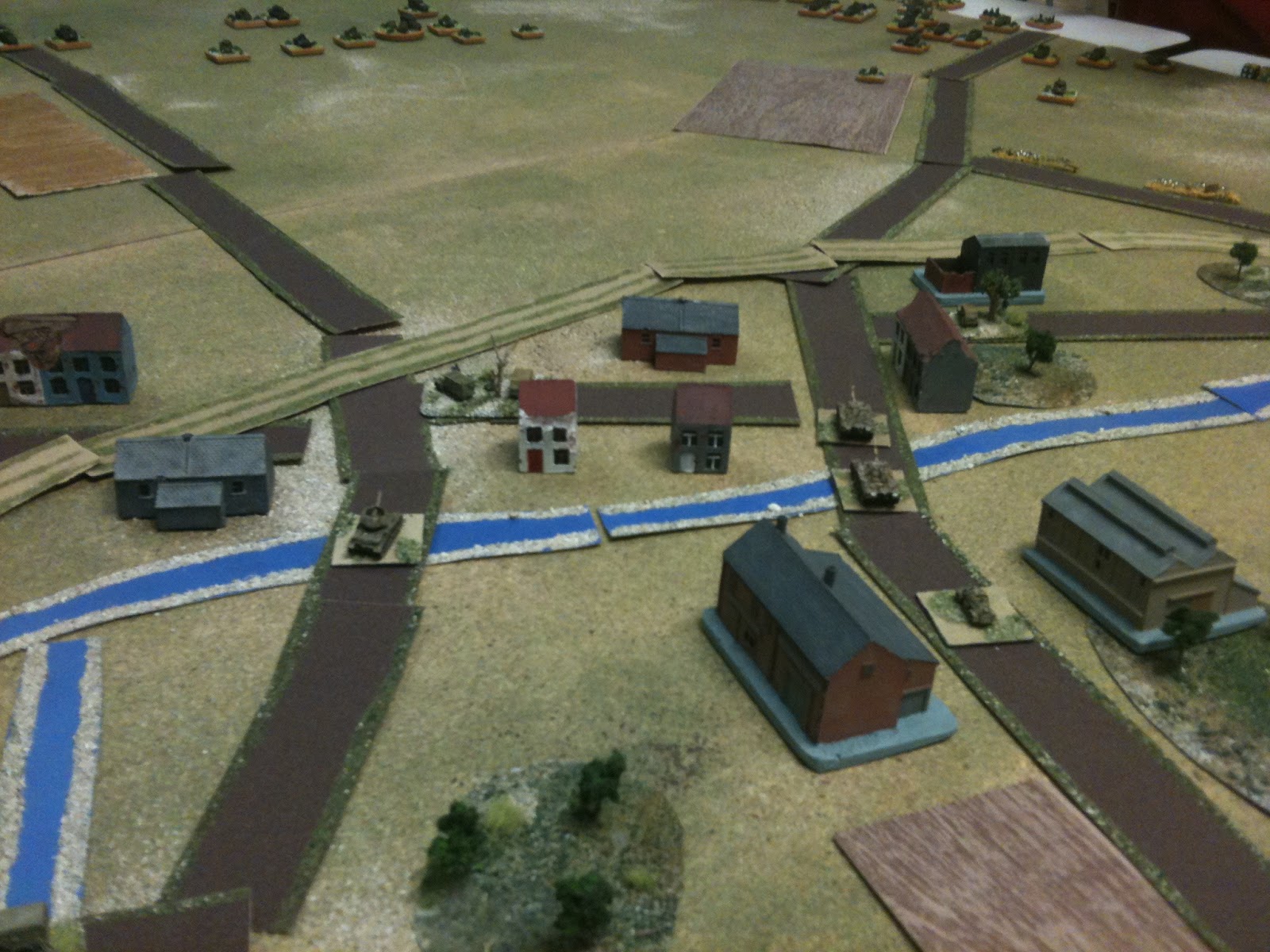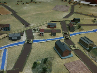 Ainsi, non seulement les blindés de Leclerc réussiront une progression effreinée, mais encore devrais-je subir, sans broncher ou presque, la feu roulant de l'artillerie ennemie . En outre, Jo prendra un malin plaisir à harceler, tout au long de la soirée, mes grenadiers retranchés dans les maisons, avec ses "lance patates" scot M8, en pointe de la progression française sur mon aile droite.