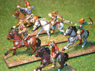 Puis, afin d'illustrer d'autres péripéties impériales, je vous livre un Alexandre le Grand (de chez Touller en 25mm), accompagné de quelques cavaliers recrutés en Scythie (made in ATF).