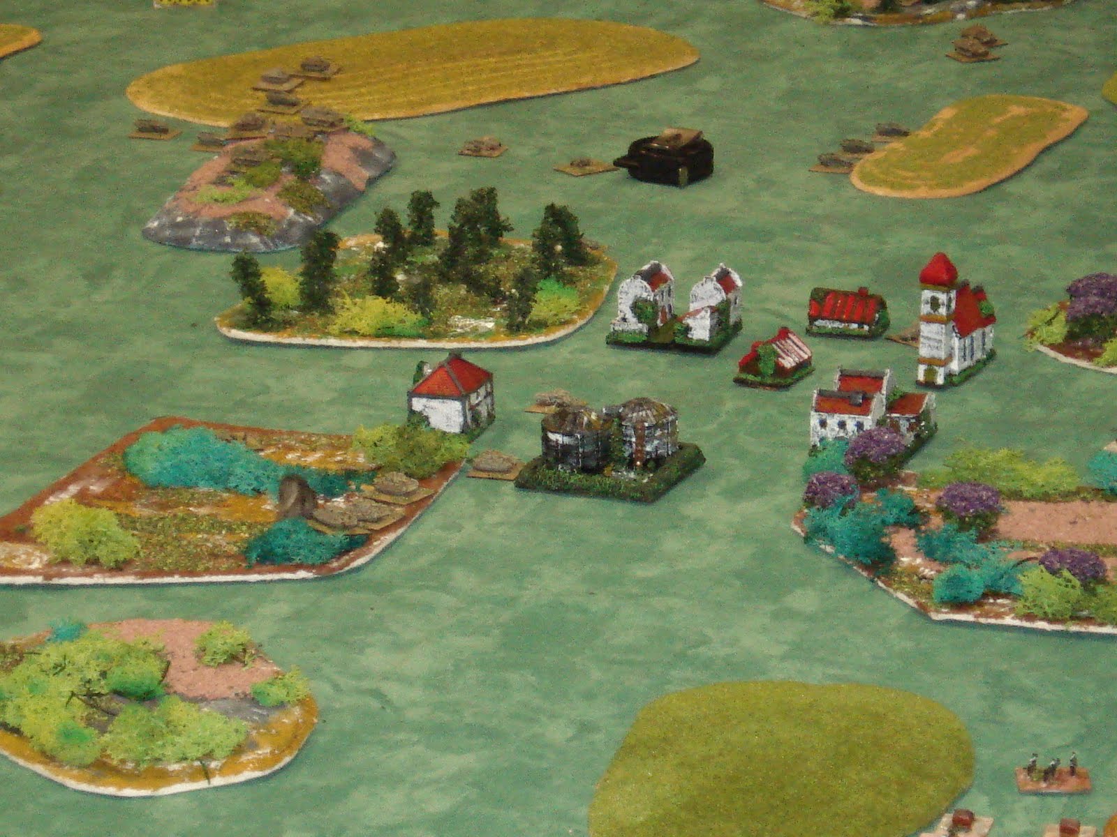 En effet, compte tenu du succès rencontré par cette nouvelle règle de jeu (dans sa version 2) depuis quelques semaines, une très grande table de jeu, permettant d'aligner 6000 points de part et d'autre, avait été organisée par nos camarades habituels. Le mot est bien choisi puisqu'il s'agissait d'un engagement sur le front de l'est où j'ai pu constater, par l'entremise de mon APN (lire appareil photo numérique), la mise en oeuvre de nombreux matériels dont des tigres I de bataillons lourds autonomes...