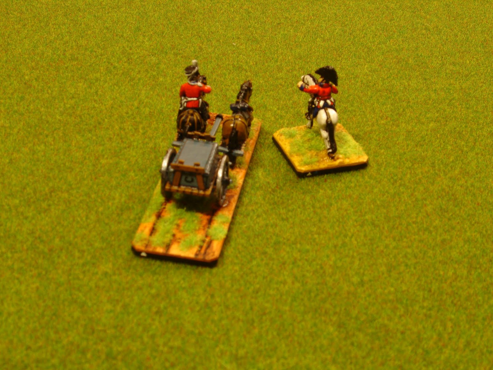 L'ensemble présenté ci-dessus a été réalisé de la façon suivante : figurine de dragon léger anglais Essex, légèrement transformé, pour le conducteur, chevaux Touller, roues Old Glory et pour le caisson, du carton ;-)