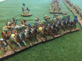 En effet, pendant cette soirée, j'ai pu admirer, notamment, deux magnifiques tables de jeu antique / médiéval à l'échelle du 15mm rythmées par la règle de jeu Warmaster, dont vous trouverez des photos ci-dessous.