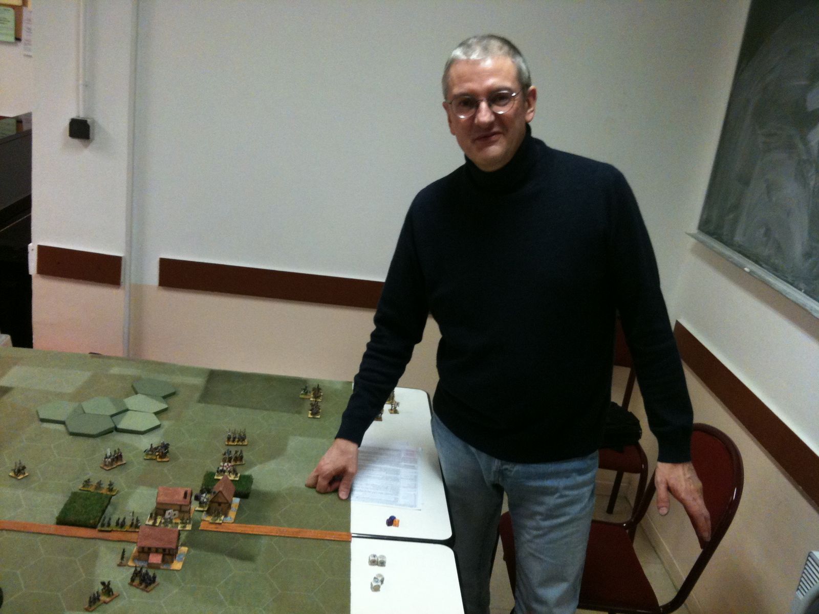 Pour l'occasion, notre ami Claude jouait le rôle de l'Empereur pendant la campagne de Russie, tandis que Jean-Louis endossait pour sa part, le rôle de Général en chef de l'armée du Tsar, épaulé sur son aile gauche par votre serviteur.